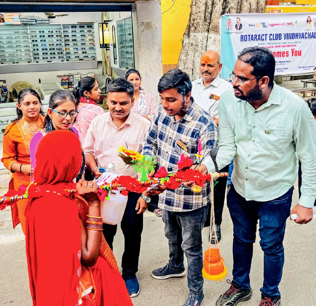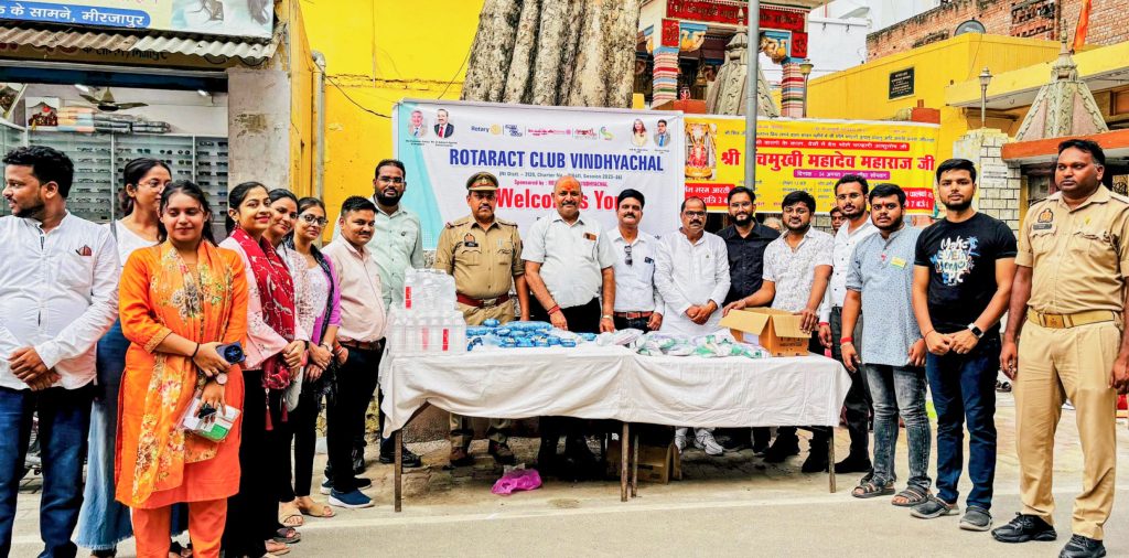 The Rotaract Club of Vindhyachal, RID 3120, organised the Kanwariya Sewa (service to devotees) initiative under Project Shraddha during the Hindu month of Sawan in July, widely observed across north India. As part of the initiative, Rotaractors distributed medical kits, biscuits and drinking water to over 250 Kanwariyas near the Panchmukhi Mahadev temple in Bariyaghat, Mirzapur, Uttar Pradesh. The medical kits contained basic medicines for fever, cold and vomiting, along with bandages, cotton and ointments.